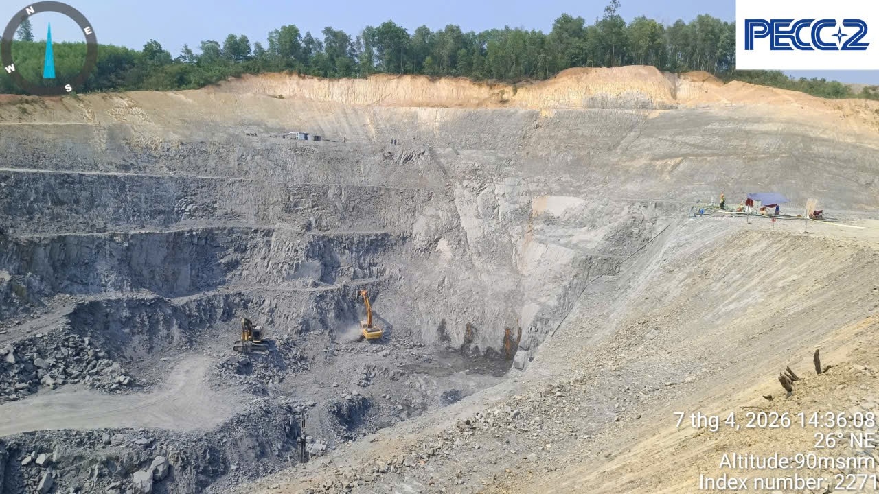 • Khu vực Nhà máy: Nhà thầu đang đẩy mạnh công tác khoan nổ mìn, đào đá hố móng tại cả hai vai trái và phải.